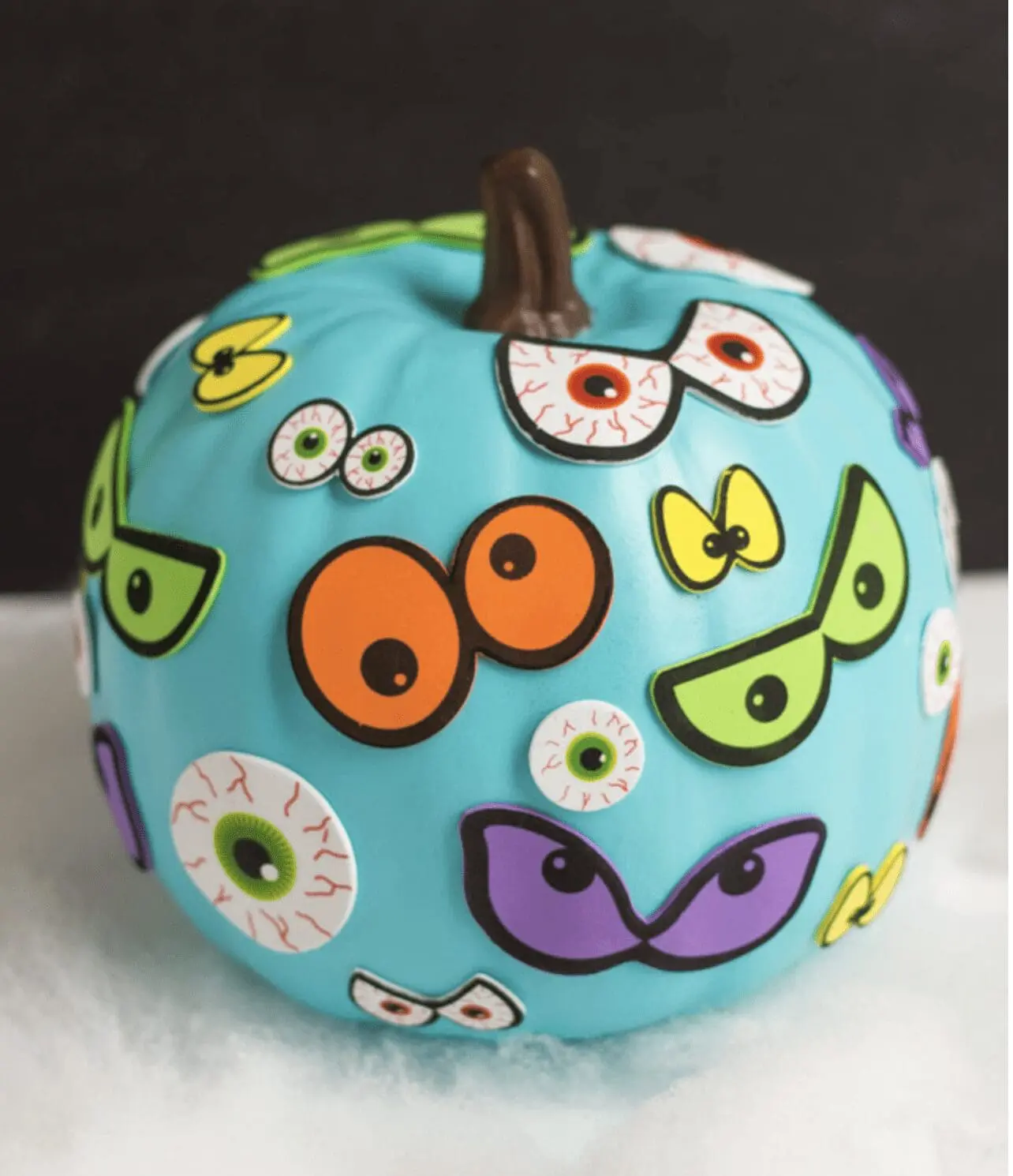 Spooky stickers make this super simple! Just peel and stick to any pumpkin. See more at Design Improvised.
