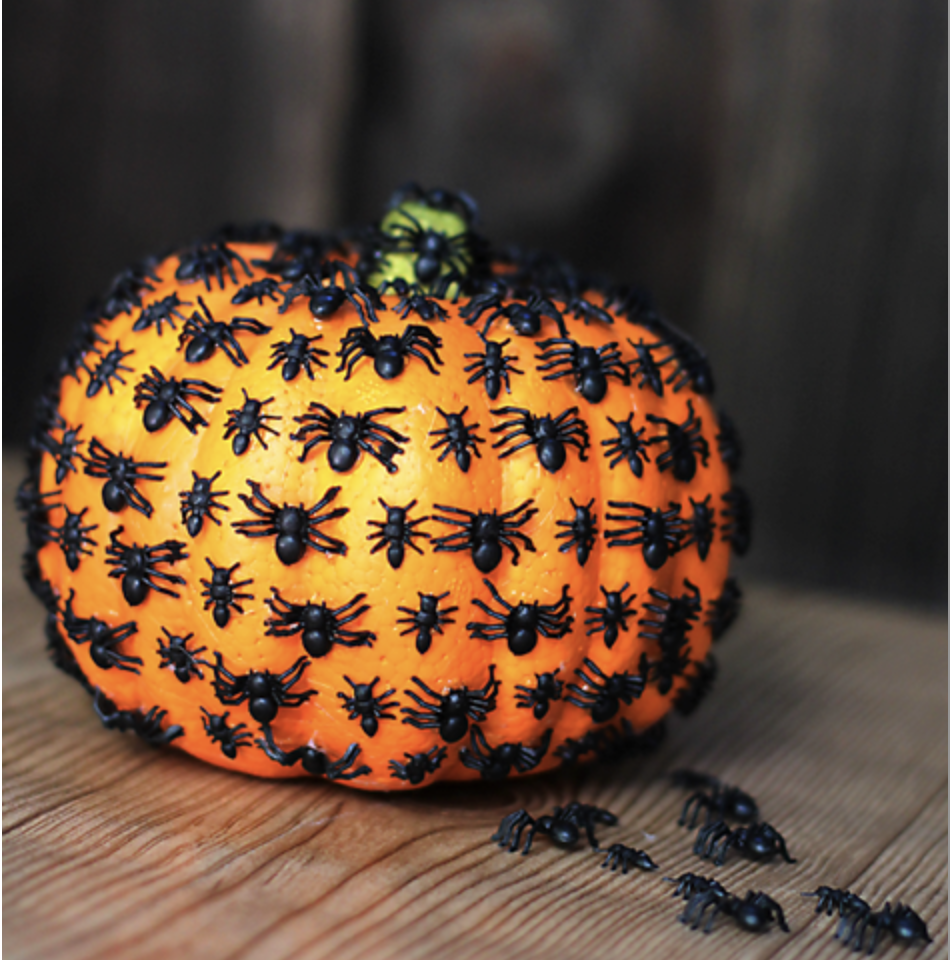 Creepy crawlers add the perfect spooky touch! It sure to make your skin crawl. Let the kids place and glue the spiders all over the pumpkin.