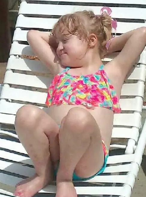 Cecilia Rabe, 7, enjoying the sunshine. Her mother, Alicia Kae, of Topeka, Kansas, shared this adorable picture with us. Cecelia has been diagnosed with DiGeorge Syndrome, hypo-plastic left heart syndrome (three open heart surgeries) and has severe food allergies. While mostly nonverbal, she is now learning to speak and has made amazing progress over the past year. Clearly, she loves swimming, but also loves coloring and she draws the best pictures!
