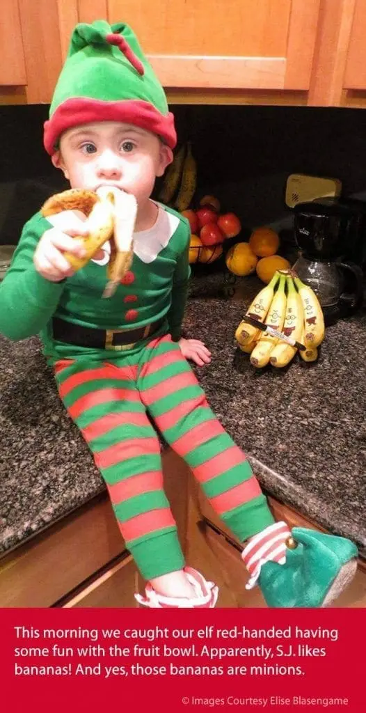 This morning we caught our elf red-handed having some fun with the fruit bowl. Apparently, S.J. likes bananas! And yes, those bananas are minions.