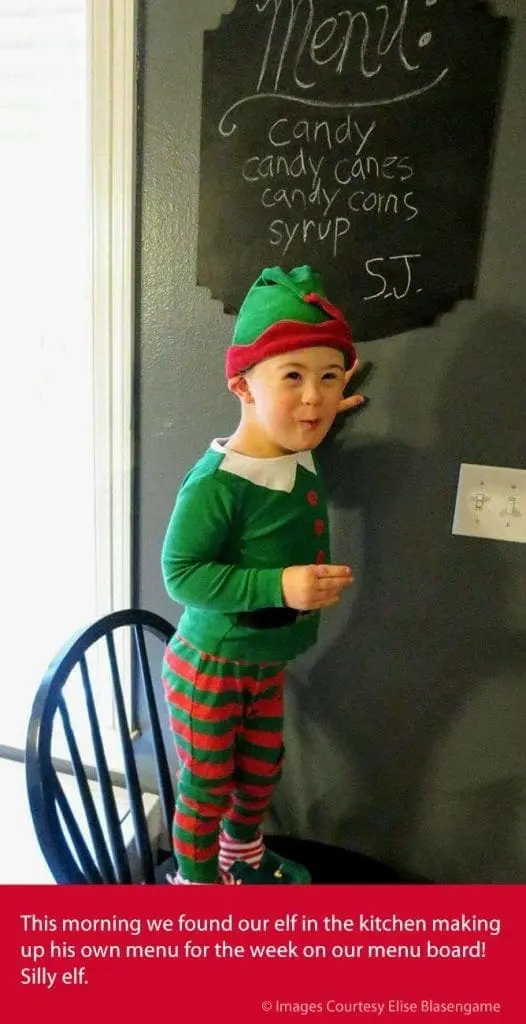 This morning we found our elf in the kitchen making up his own menu for the week on our menu board! Silly elf.