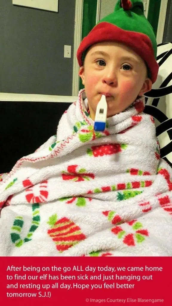 After being on the go ALL day today, we came home to find our elf has been sick and just hanging out and resting up all day. Hope you feel better tomorrow S.J.!)