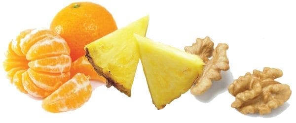 Kiddo: In a large bowl, gently combine fruits. Adding walnuts and shredded coconut flakes gently mix together until well-combined. Serve in your favorite parfait dish and a cherry on top before serving. Store leftovers in the refrigerator in cover container.