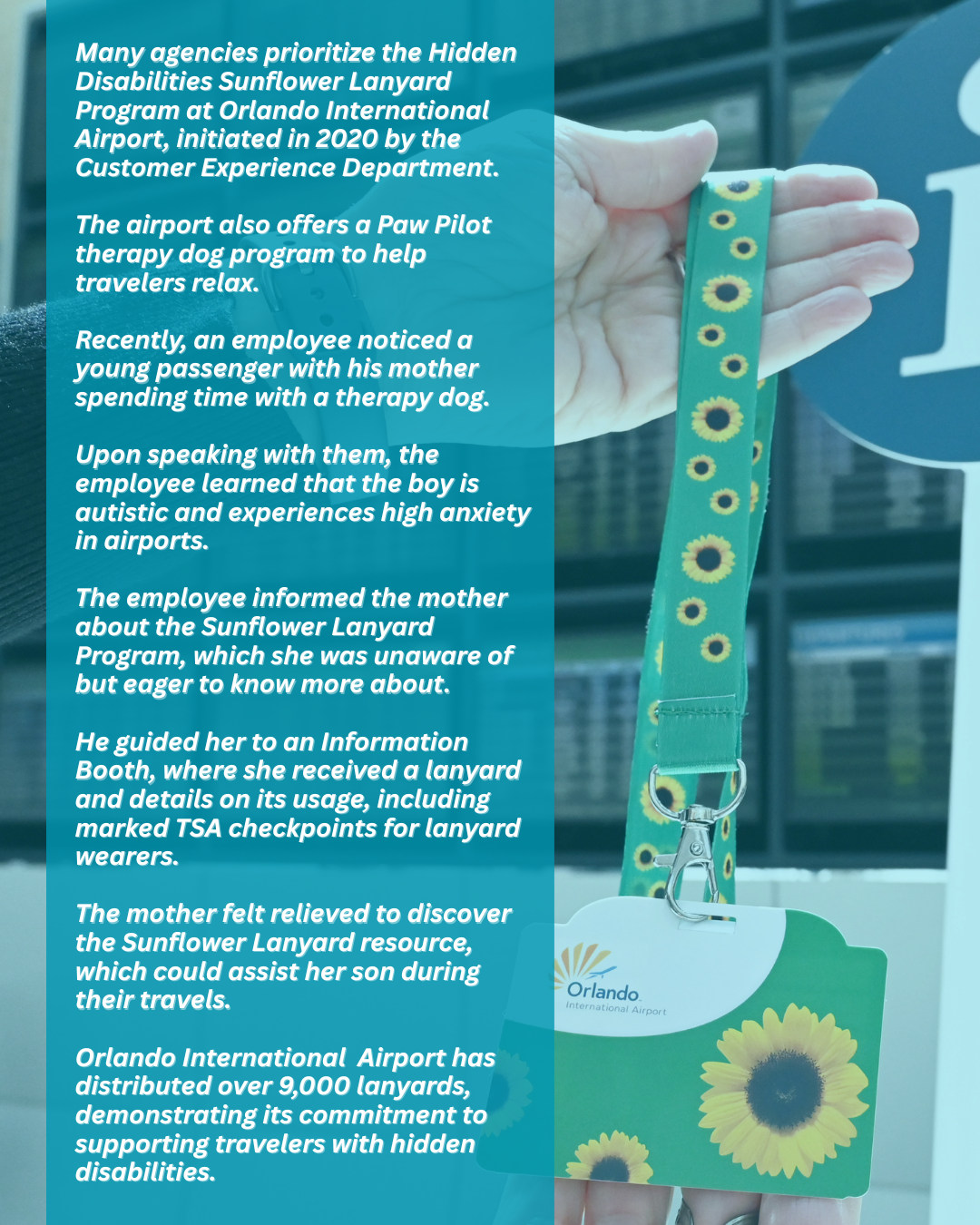 Airport staff trained in the program will recognize the Sunflower lanyard and offer appropriate assistance. The availability and pickup locations for Sunflower lanyards vary by airport. (see link in #4 below)