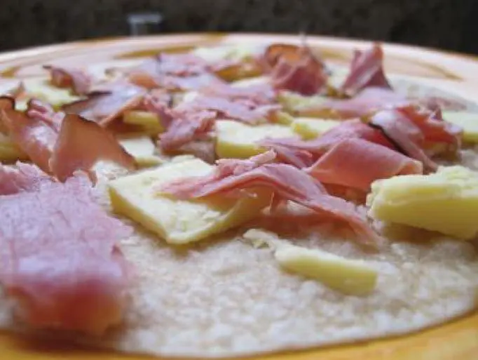 Kiddo: Get the two pieces of ham and tear into small pieces and place it on the tortilla. Put the tortilla with the cheese and ham on it into the oven (with the help of an adult).