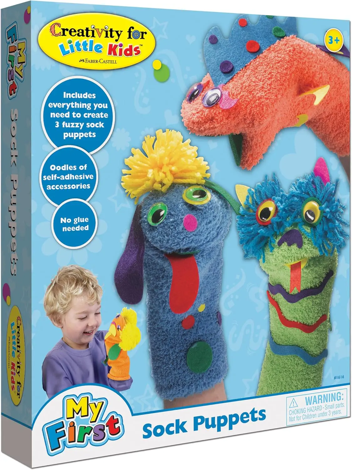 Make Your Own Sock Puppets Puppets are a powerful way for both parents and kids to tell stories. Get your child started with Make Your Own Sock Puppet by Creativity for Kids. Kit includes everything kids need to make three soft, cute, puppet masterpieces and no glue necessary.