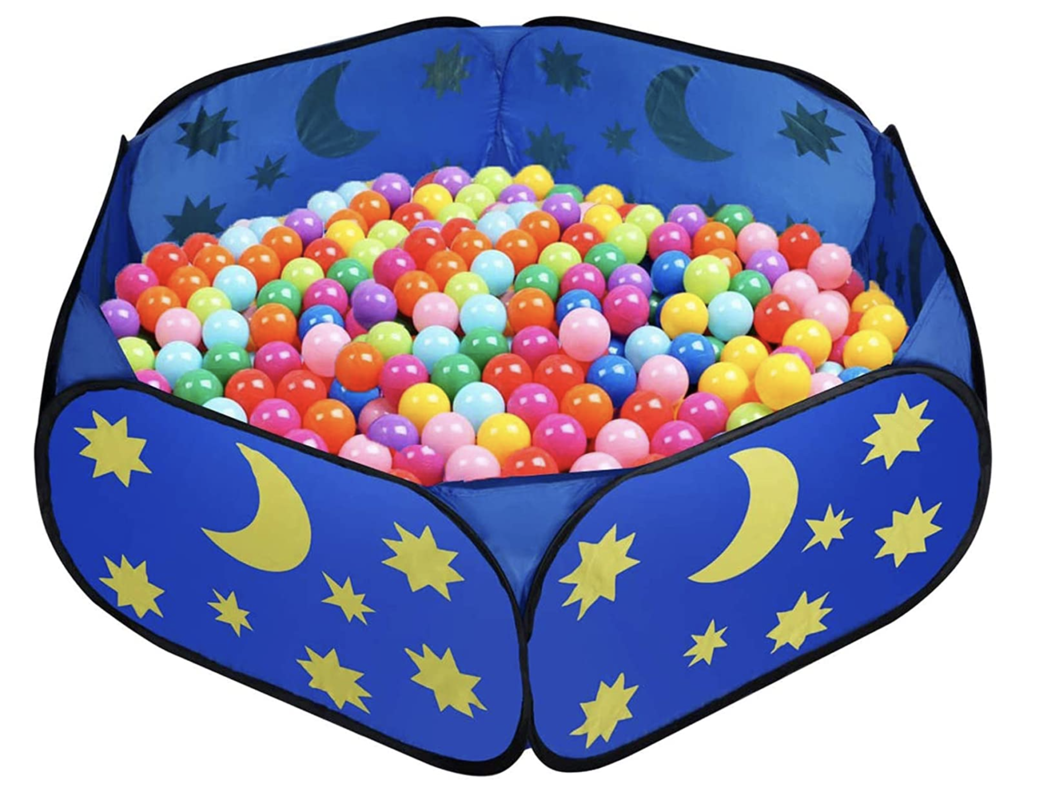 Kids will have a blast playing in the ball pit. Pop up set up makes it easy to use. It can be used inside or outside playing. – Balls Not Included