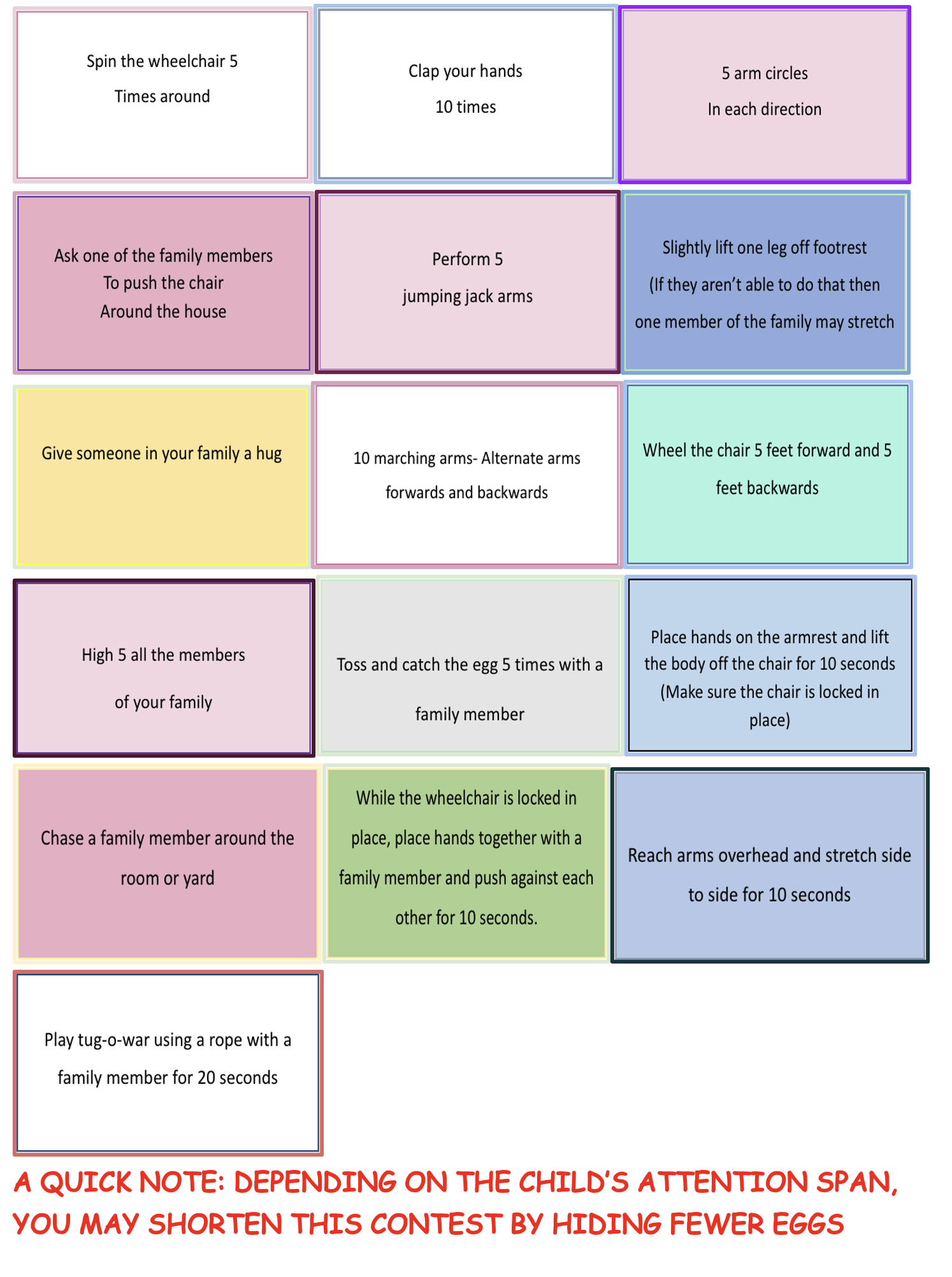 - Each time your children find an egg, they must perform the exercise mentioned on the slip of paper inside the egg.