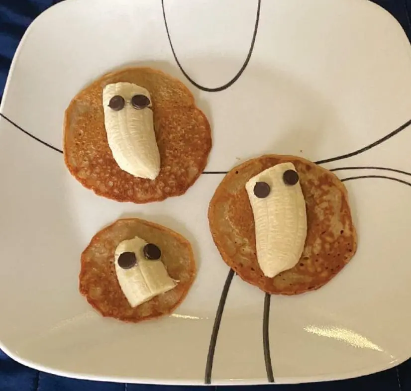 - Start the morning off with Halloween pancakes using molds, icing to make faces on round pancakes, or a slice of banana with chocolate chip or raisin eyes to look like a ghost.