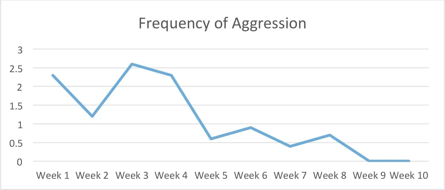 It was exciting to see how quickly Richie responded to the plan. The data on Richie’s aggression from the first several weeks is displayed in the Frequency chart.