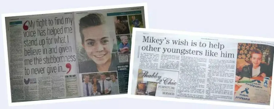 At the age of 13, 11 years after receiving my diagnosis, feeling fed up with the loneliness, I wrote a poem about living with verbal dyspraxia (apraxia) and how I wanted more awareness. This was the first time that I had ever expressed my feelings about the issue, and it sparked a conversation with my mum about what we could do to raise the profile of my diagnosis. That is when ‘Mikey’s Wish’ was born. I decided that if I felt this way, others must, too. So, I set up a Facebook page and began to share my story. My hope was to raise the profile of verbal dyspraxia (apraxia), and if I helped just one other family feel less alone in the process, then that would make it all worthwhile.