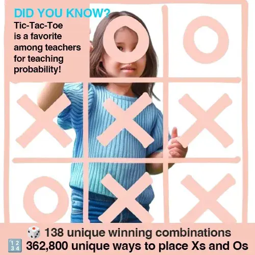 For many years, Tic-Tac-Toe has been played by both children and adults. As a child, I recall playing this game with my neighborhood friends during school recess and at our home using the sidewalk, parking lot, driveway, and lots of colorful chalk. Children today continue to enjoy the game in this manner as well as on their tablets. Fun Fact It was fascinating to read that tic-tac-toe is popular among teachers because it is the best way to teach a simple mathematical principle of probability. For instance, you will be surprised to know that there are as many as 138 unique winning combinations or 362800 unique ways to place Xs and Os into the grids.