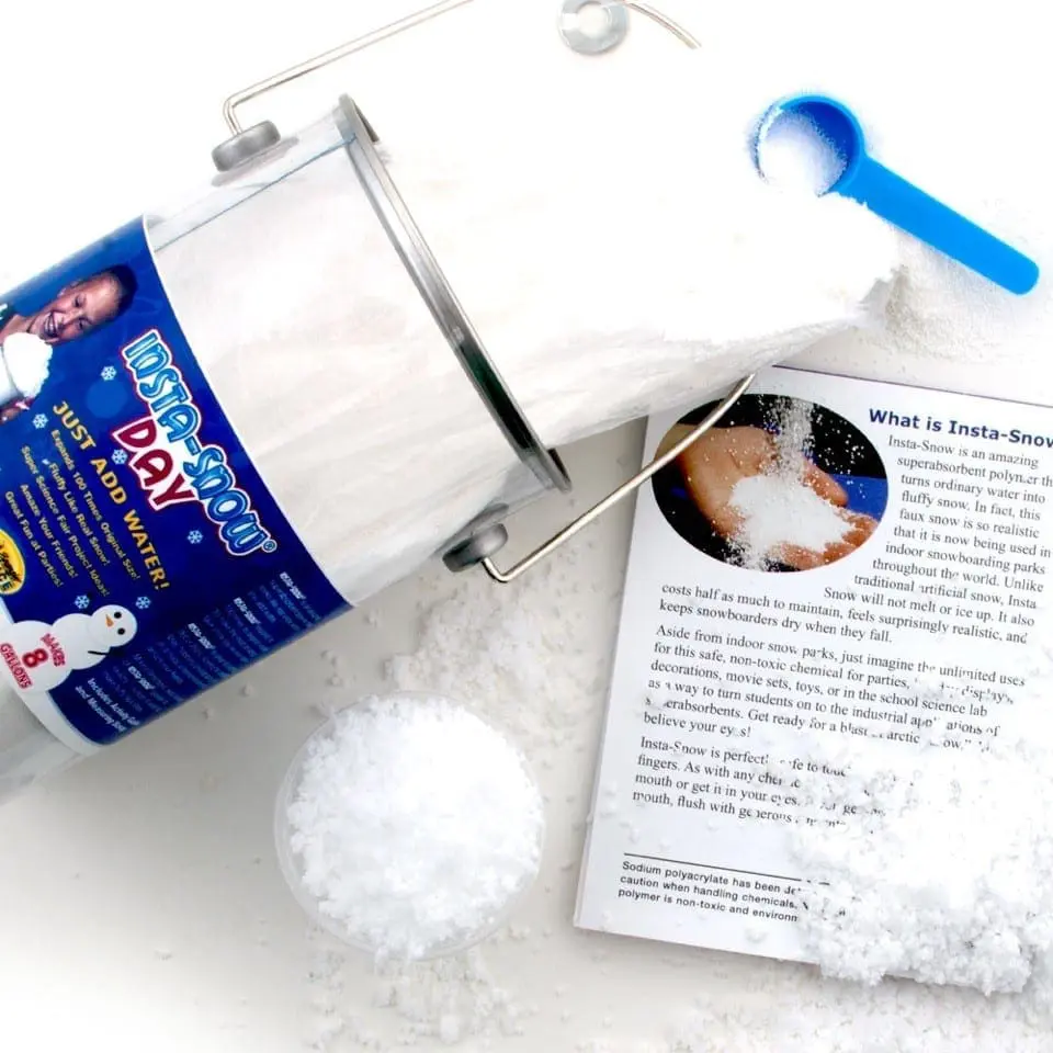 Insta-Snow by Steve Spangler Science is an exciting experiment turned decoration. Within seconds of adding water, the powder mixture turns into a solid and erupts into fluffy, white snow! This snow is perfect for decorating winter scenes or sprinkling around holiday decorations to turn any place into an instant wonderland!