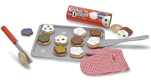 Share your creativity with others and make someone smile by baking and decorating holiday cookies. Add frosting, sprinkles and candies galore! This wooden set looks just like the dough you buy from the grocery store for realistic pretend play fun without the sugar high!
