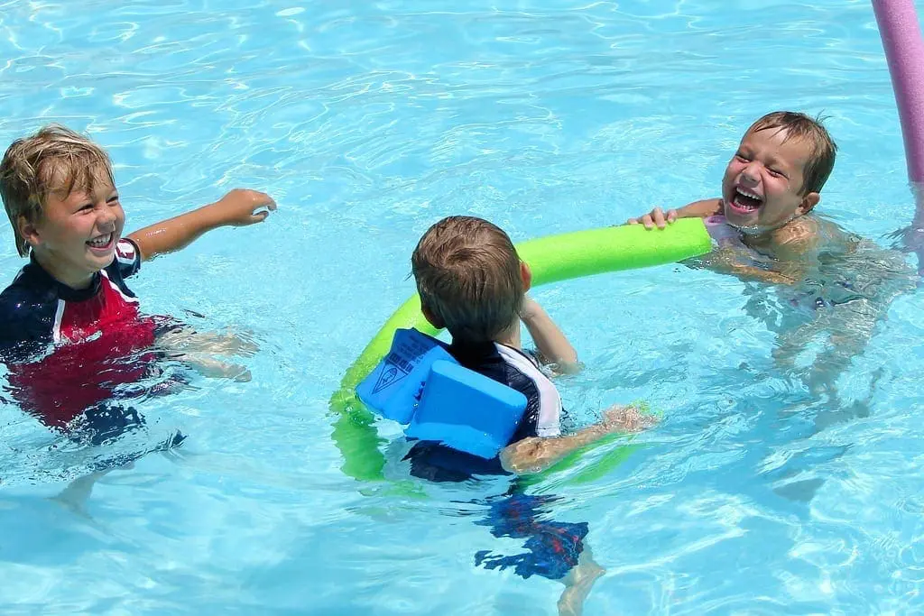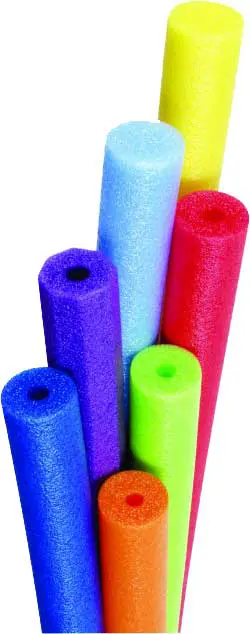 with basic motor and social skills by putting a new twist on the use of inexpensive swim equipment: the foam noodle and the child-size inner tube.