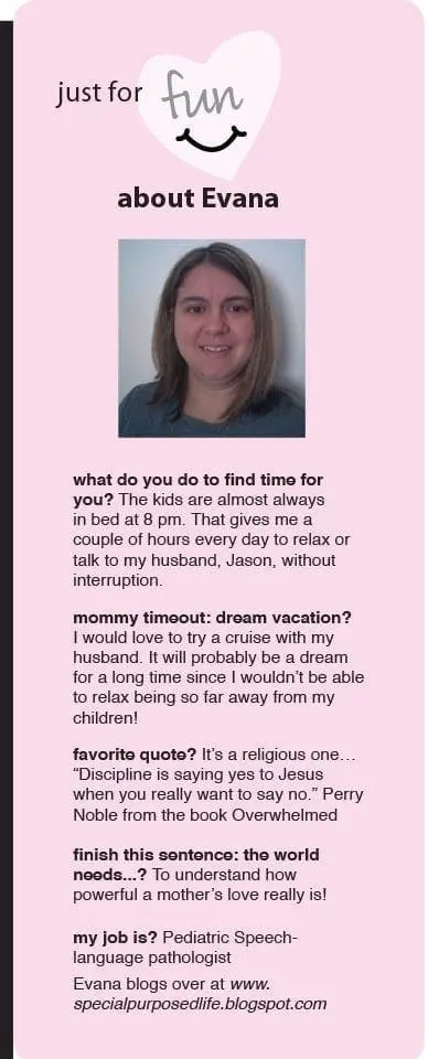 Evana thank you so much for taking the time to share with us and for letting us get to know a little about you and your family.