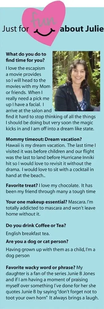 Julie Jones is a mother and blogger who contributed to this issue’s “Real Moms Share” section. We asked her to give us an insight into herself, as well as into her life raising her son, BJ. We asked her a series of questions; some serious and some “just for fun”. See what she said…