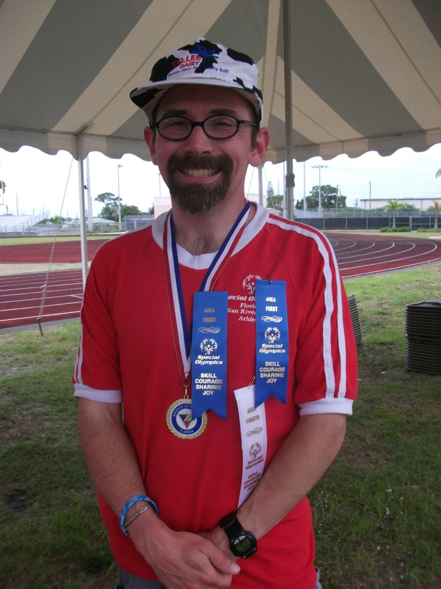 Once home, however, it became very clear that something had to be done about Michael’s weight. When Michael was in Kentucky, he got to eat as much and as often as he could, literally, find food. It seemed that his main focus had become food and the computer. His parents didn’t monitor his daily actions and his diet. They were, simply, very sick and incapable of helping. When asked to explain the diet issue, Robin, matter of factly, said, “It took me a while to get him to lose weight, but he did it, and he’s been maintaining. He’s kind of edging up a little bit now, but nothing like he was. He’s lost over a hundred pounds, and he’s probably kept about seventy-five of that off, so he’s still doing well. Food and computer time are still what occupies his time the most, and when anything interferes with that, he gets frustrated, so he’s frustrated with me a lot, because I have to watch what he eats, because he’ll gain it back. He has come a long way, BUT, even at his age now (42), it takes more than one person to assist with the day-to-day issues…and there have been some ‘doosies’. Michael can ride the local transportation system here in Florida (the GoLine) and I have come to know his route driver. The driver noticed that Michael was looking through the trash at one of his stops along the route. It turned out that Michael, being a very literal and trusting person, was looking for a drink cup that a passenger discarded… thinking that he would simply drink what was left. So, thankfully, I have eyes and ears out in the real world. He was not social before, and now he’s a little bit ‘too social’. Since he’s been here, he’s also become involved in Special Olympics, bowling, track and golf. I am trying to keep him involved and out there being active because, theoretically, he’s going to outlive me, and my goal is to get him to be able to live on his own or with some type of light supervision, and we’re just not there yet.”