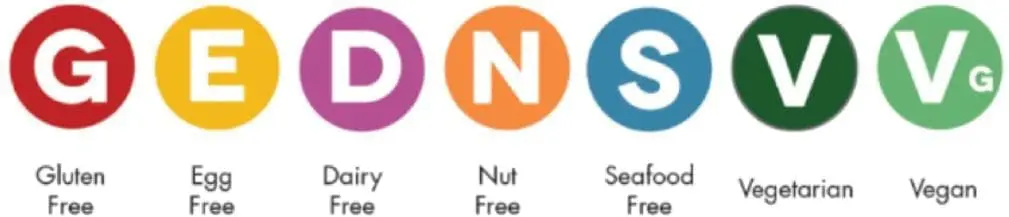 If they tell you everyone is trained to put on new gloves and that they have special areas for “free of” food, then you know you have a better chance of not getting ill. Many restaurants use symbols on their menu to designate which of their foods are “free of” certain ingredients. This should hopefully mean that they “get it” and hopefully they will not cross contaminate your food. Here are some symbols used at some restaurants: