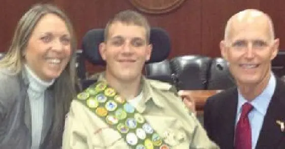 John Patrick McGlone has a meeting with a fellow Eagle Scout, Mr. Rick Scott on Developmental Disabilities Awareness Day!