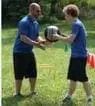 Step 3: The participant picks up the Sandbell and hands it to the next person