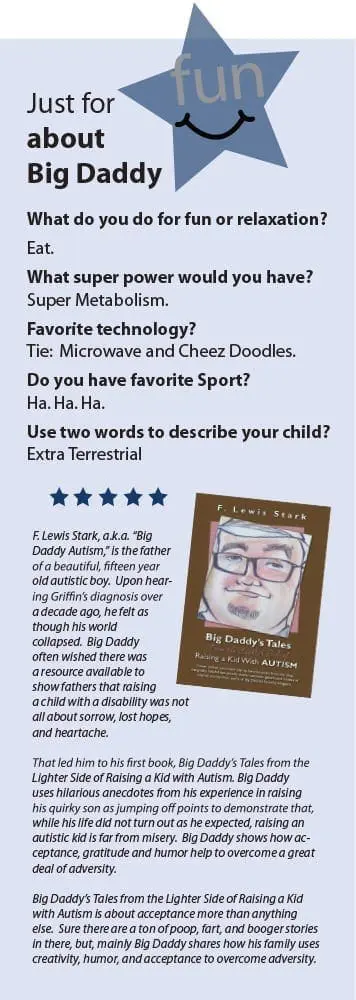 It’s safe to say that no family is ever going to be perfect, but, as we learned from Big Daddy, you can use acceptance, gratitude and humor to help overcome a great deal of adversity. Big Daddy shares from the lighter side of raising a child with autism. In an interview with him, we asked several questions about him and his family and in between laughs we understood why Big Daddy’s been called, “The Dave Barry of Autism Parenting…”. It is for that reason that he was selected as a “Super Dadvocate”.