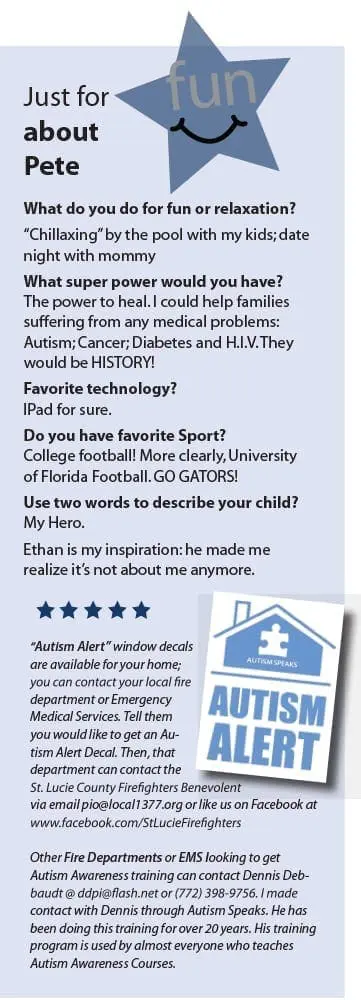 Responders get necessary training in order to better communicate with, handle, and treat people with autism. We’ll let Pete tell you about himself and his family in his own words. GO PETE!