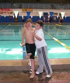 Scott and Holly have absorbed Evan into their swimming family, like any other child, and have turned him into a boy who can swim a mile without the slightest struggle. They encourage him, joke with him, cheer him during practice and swim meets, continuously help him improve his skills and boost his self esteem whenever possible. They have even handled his occasional “meltdowns” with grace and care. We are so grateful to them for the work they do and the commitment they have shown to all three of our boys.