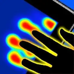 Heat Pad HD is a calming, visually pleasing and mesmerizing app that simulates a surface reacting to the heat of the touch of one’s fingertips. There are 18 surface types available, including heat, flame, sky, kids, night, and others. Each surface has a different background color that reacts with a variety of colors as it is touched with fingers or the whole hand.